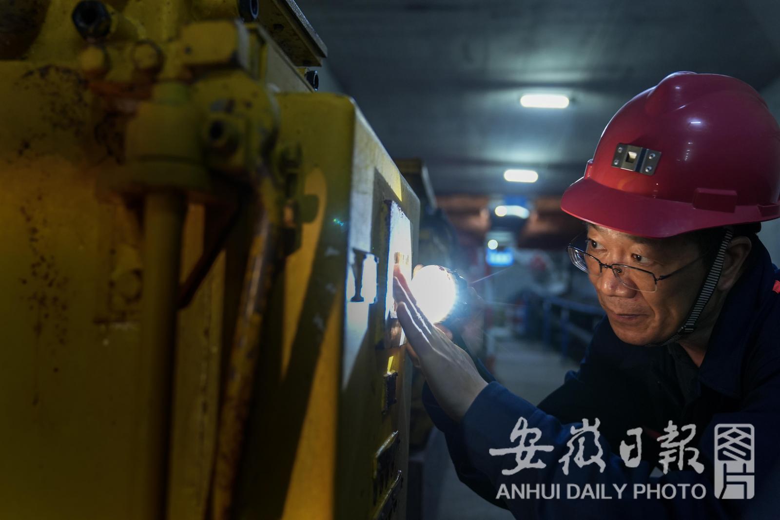 5月23日,杨杰正在对割煤机,防尘设备进行攻关。