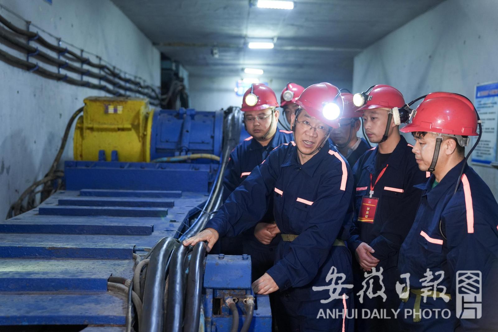 杨杰在模拟的煤矿工作面,现场教学。