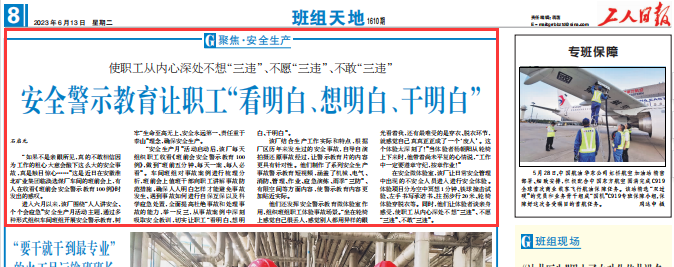 “安全生产月”活动启动后,该厂每天组织职工收看《班前会安全警示教育100例》,做到“班前五分钟、每天一案、每人必看”。车间班组对事故案例进行梳理分析,班前会上值班干部向职工讲解事故防范措施,确保人人明白怎样才能避免事故发生、遇到事故如何进行自保互保以及科学应急处置,全面提高杜绝事故和处理事故的能力,举一反三,从事故案例中深刻吸取安全教训,切实让职工“看明白、想明白、干明白”。