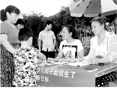 安徽淮北矿业集团朱仙庄矿幼儿园开始走社会化办学之路,幼儿园老师由以前在办公室等生源变为主动“走出去”到工人村、街道招生。张万学 摄