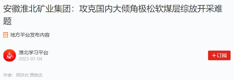 据介绍,该公司围绕7401工作面创新实施的《极倾斜松软煤层安全高效综放开采成套装备与技术研究》科研项目荣获淮北矿业集团科学技术奖二等奖。在开采过程中,该公司还形成了解放思想、勇闯新路、聚能攻坚、严细实精的“7401”精神。