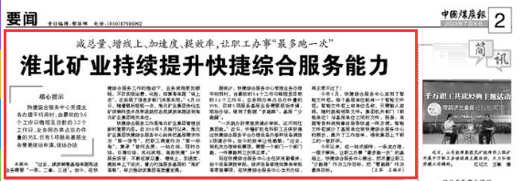 快捷综合服务工作是淮北矿业集团管理创新的重要内容。自2018年5月施行以来,淮北矿业集团快捷综合服务中心始终把基层需求作为“第一信号”,把职工满意作为“第一标准”,秉承“首问负责、一站办结、限时办结、日清日结、优化流程、高效快捷”24字服务宗旨,不断在减总量、增线上、加速度、提效率上下功夫,着力打造服务基层的“淮矿高铁”,有力推动该集团高质量发展。