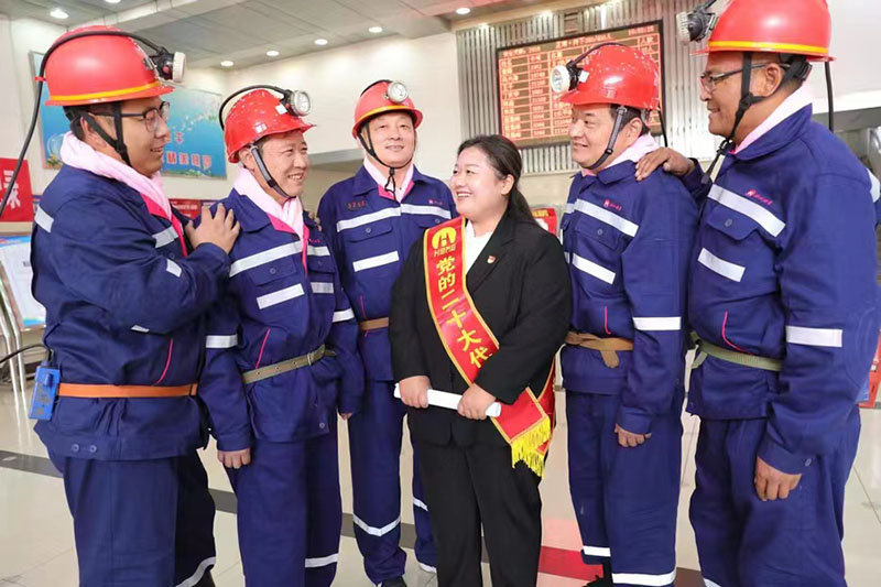 党的二十大代表、淮北矿业集团桃园矿保运区主提升机司机刘婉春深入基层井口、车间,为工友宣讲党的二十大精神。乔时庆 摄
