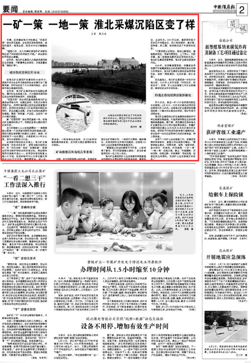 2022年,在安徽省国资委、安徽省自然资源厅对省属煤炭企业的采煤沉陷区综合治理工作考核中,淮北矿业集团全面完成各项考核任务,实现“耕地增加、生态改善、城乡发展”。