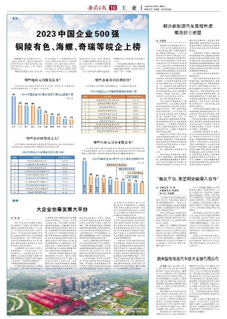 本报讯(记者 汪国梁)9月20日,中国企业联合会、中国企业家协会在合肥公布2023中国企业500强。500强按营业收入排名,入围门槛为469.98亿元。