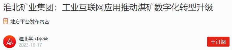 “平台整合了淮北矿业集团内外部资源,统筹规划网络、平台、数据、安全与融合应用各领域建设内容,实现了企业各层级要素全面互联,助推了煤矿数字化转型升级。”安徽淮北矿业集团机电装备部信息与装备技术研究室主管张明泉说。