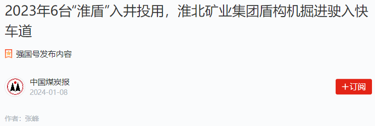 据悉,2024年,淮北矿业集团将在袁店一井煤矿、朱仙庄煤矿、邹庄煤矿、涡北煤矿等新增6条盾构作业线,加上接续2023年已运行的盾构作业线,2024年该集团将有17条盾构作业线施工。