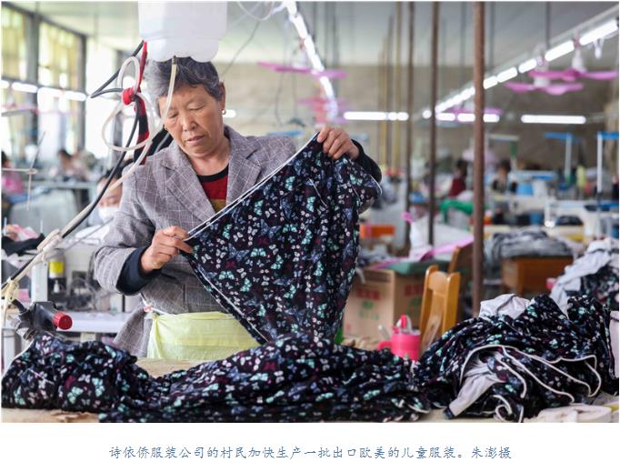 在该村诗依侨服装公司,村民正在加快生产一批出口欧美的儿童服装。据该村返乡青年、诗依侨服装公司负责人孙玉珍介绍,该公司最初是四五个人的家庭作坊,为壮大公司规模,驻村工作队对接砀山县人社局争取政策办理创业贷款20万元。目前该公司已发展成为拥有80名固定员工的服装加工企业,同时也解决了一部分留守妇女和残疾人的就业问题,实现了企业和村民的双赢。