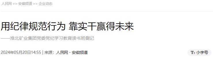 在读书中收获感悟,在研讨中得到启迪。5月15日,为期2天的淮北矿业集团党委党纪学习教育读书班结业。各级党员干部集中时间、集中精力,通读、精读、研读习近平总书记关于党的纪律建设的重要论述及《中国共产党纪律处分条例》(以下简称《条例》)等内容,在学习和掌握纪律上求实效,在维护和遵守纪律上见行动,取得了良好的学习效果,达到了预期目标,凝聚起干事创业的磅礴力量。