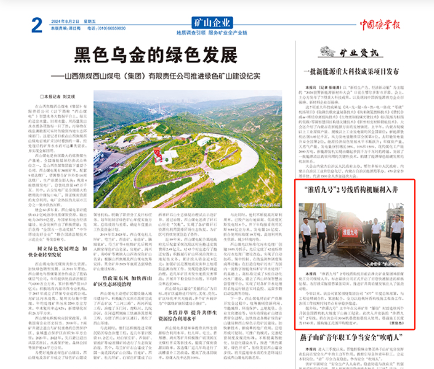“淮盾九号”2号线盾构机日前在淮北矿业集团神源煤化工公司入井,标志着该公司正式开启了岩巷快速掘进的崭新征程,为打破采掘接替紧张局面,推进矿井高质量发展注入了强劲动能。
