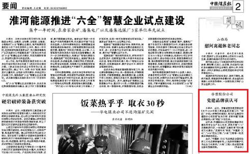 近年来,华塑股份公司党委统筹新项目建设和安全生产中心任务,积极开展“5+6”党建提质行动,一体推进“五廉共育”阳光廉洁文化建设。“党建专员”制度、“华塑家·文化”、“3456”民生工程、“六亮”工程等一批党建品牌破壳而出。