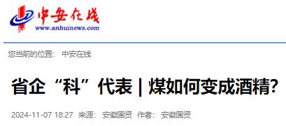 《中安在线》:省企“科”代表 | 煤如何变成酒精?