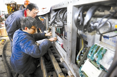 今年以来,淮北矿业集团朔石矿业西部井在综采掘设备自修中,突出干中学、学中干,加速技能人才成长,实现岗位增效、技术增值。图为12月7日职工维修煤机电控系统的场景。 乔时庆 摄