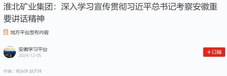 “我们将扎实推动习近平总书记考察安徽重要讲话精神进基层、入人心,把重要讲话精神全面渗透在具体工作中,把学习成效落实到实际行动上。”淮北矿业集团党委宣传部相关负责人说。