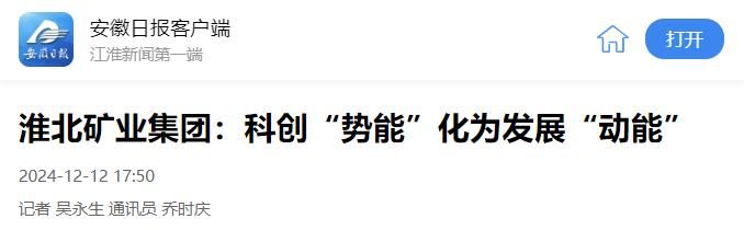 日前,淮北矿业集团13项创新成果分获2024年度中国煤炭工业协会科学技术奖一、二、三等奖,8项成果获评2024年煤炭企业管理现代化创新成果奖,再次蝉联2024安徽百强企业榜单前十。