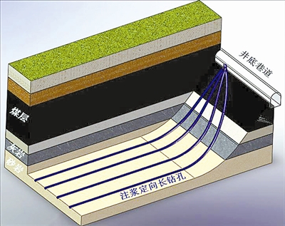 朱乐章说,在钻探方面,采用地面顺层钻进精确控制技术,对疑似突水点及薄层灰岩中的各类裂隙进行拉网式探查;在注浆方面,对探查到的突水通道及岩溶裂隙进行高压注浆,达到防止突水的目的。