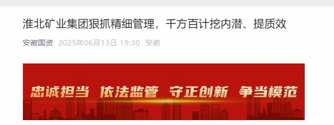 淮北矿业集团党委把学习教育与推动企业经营发展紧密结合起来,锚定年度目标任务,积极应对市场形势变化,砥砺严实作风、加强精细管理,出台强化降本增收稳效二十条刚性举措,有效控制运营成本,着力提升企业发展质量。