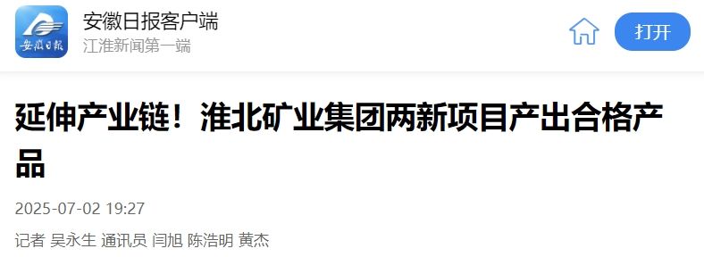 记者7月2日从淮北矿业集团获悉,该集团旗下两家企业新建项目近日分别产出合格产品,进一步延伸了煤化工产业链。
