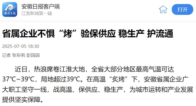 《安徽日报》《安徽国资》:省属企业战高温、保供应、稳生产