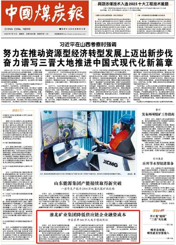 淮北矿业集团供应链金融平台引入金融机构,将该集团优质信用传导至产业链、供应链上下游企业,为该集团核心企业及链属企业提供开放性、专业性的全流程产业金融服务,持续优化供应链企业融资环境。