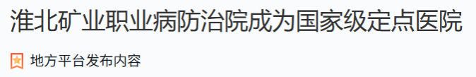 《学习强国》:淮北矿业职业病防治院成为国家级定点医院