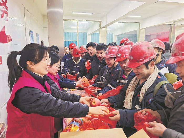 2025年12月31日,安徽淮北矿业集团朱仙庄矿组织协安员来到井口开展“迎新年送平安”活动。协安员一边将慰问品送到职工手中,一边叮嘱职工节日期间注意安全。(王道玉)