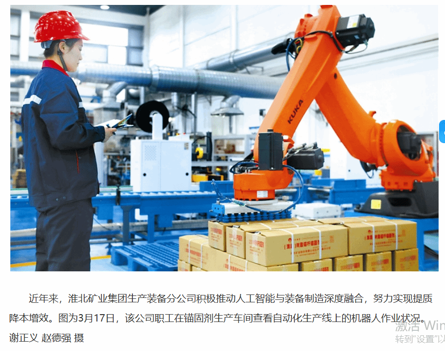 《中国煤炭报》:淮北矿业集团生产装备分公司推动人工智能与装备制造深度融合