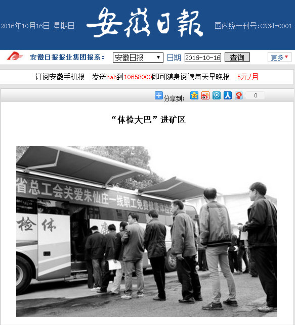 《安徽日报》2版:“体检大巴”进矿区