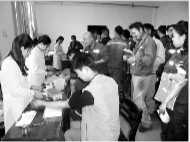 日前,为方便一线职工进行一年一度的全面体检,淮北矿业临涣焦化公司把体检车开进厂区。(杨永才)
