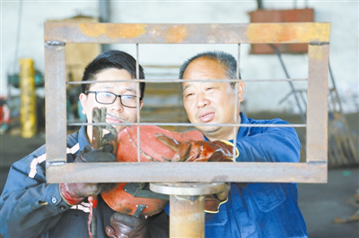 淮北矿业集团涡北矿紧密结合矿井发展实际,不断创新机制体制,通过“1带1”“N带1”“1带N”的师带徒“塑能”技术培训模式,传承技术与技德,着力培养优秀青年工匠。图为该矿机电科技术大拿纵曙光(右)为青工传授电焊技能。