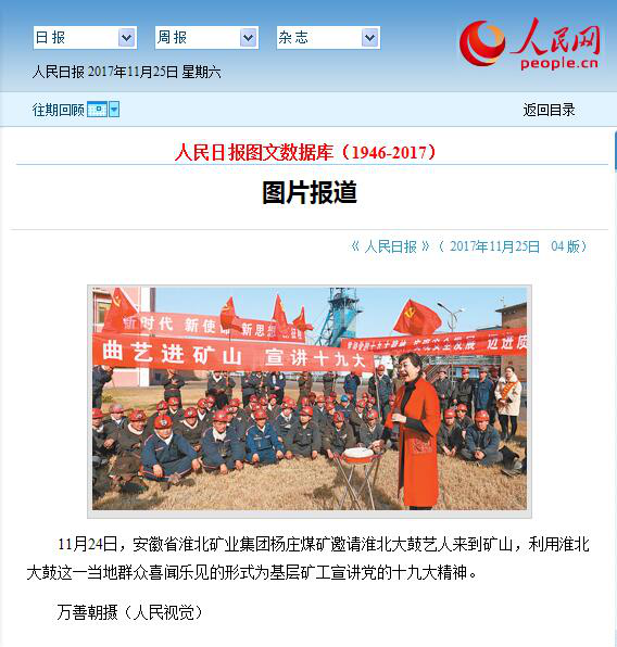 《人民日报》4版:杨庄矿曲艺宣讲党的十九大精神