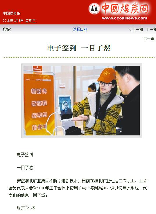 《中国煤炭报》1版:淮北矿业“两会”电子签到