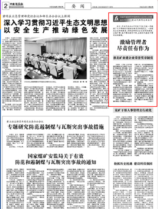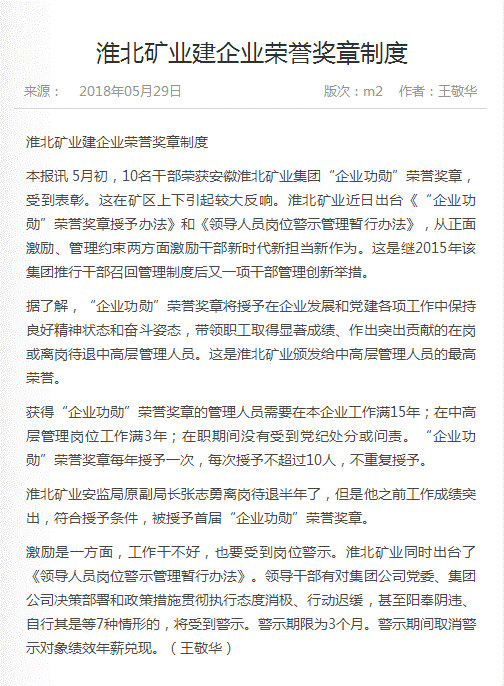 《中国煤炭报》:淮北矿业建企业荣誉奖章制度
