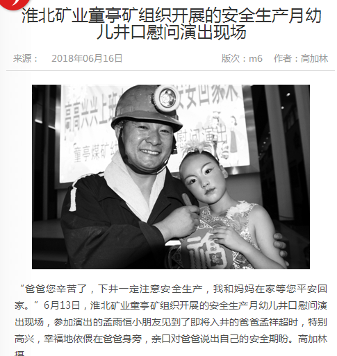 《中国煤炭报》:淮北矿业童亭矿开展安全生产月幼儿井口慰问演出