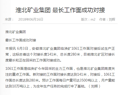 《中国煤炭报》:淮北矿业集团最长工作面成功对接