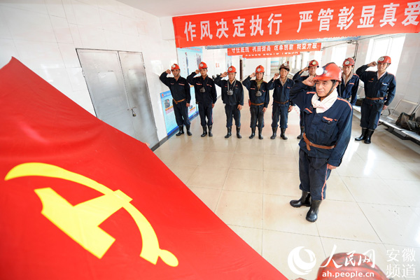 淮北矿业袁店二矿掘进二区党支部组织党员重温入党誓词
