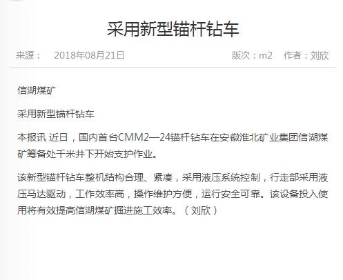 《中国煤炭报》:采用新型锚杆钻车