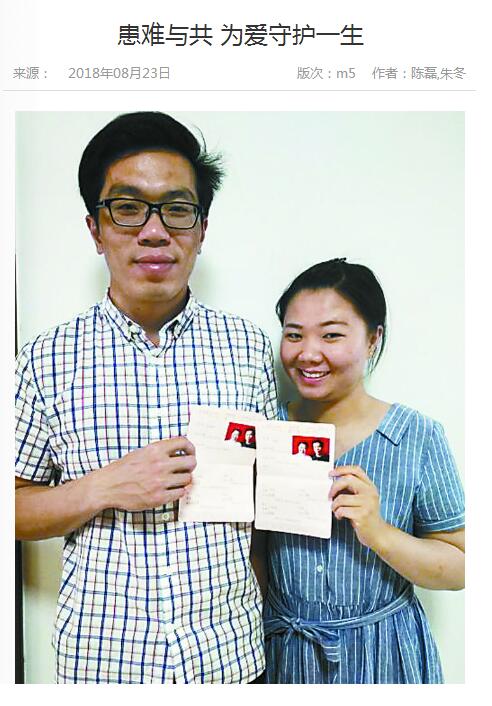 不久前,淮北矿业职业病防治院职工孙青松搀扶着宋燕步入了婚姻的殿堂,用实际行动抒写了一段感人的爱情故事。