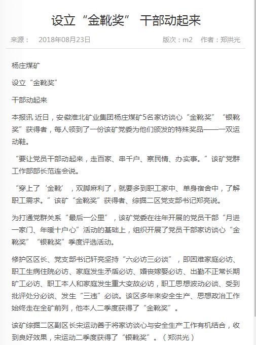 《中国煤炭报》:设立“金靴奖” 干部动起来