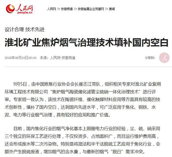 9月5日,由中国炼焦行业协会会长崔丕江带队,组织相关专家对淮北矿业紫朔环境工程技术有限公司“焦炉烟气陶瓷催化滤管尘硫硝一体化治理技术”进行评审。专家组一致认为,该技术在陶瓷纤维、催化触媒材料应用等方面具有较高的技术创新性,填补了国内空白,达到国内先进水平,可广泛应用于焦化、钢铁、水泥、电力等行业烟气治理,具有较好的应用和推广价值。