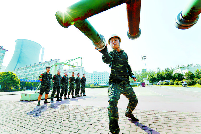 日前,安徽淮北矿业集团临涣焦化公司专职消防队的业务骨干正在认真训练,备战2018年全国危险化学品救援技术竞赛。为了备战,该公司抽调了10名业务骨干,组建了集训队,开展为期三个月的集中训练。王明明 摄