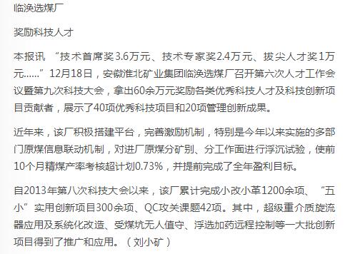 《中国煤炭报》:奖励科技人才