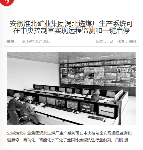 《中国煤炭报》:涡选厂生产系统一键启停