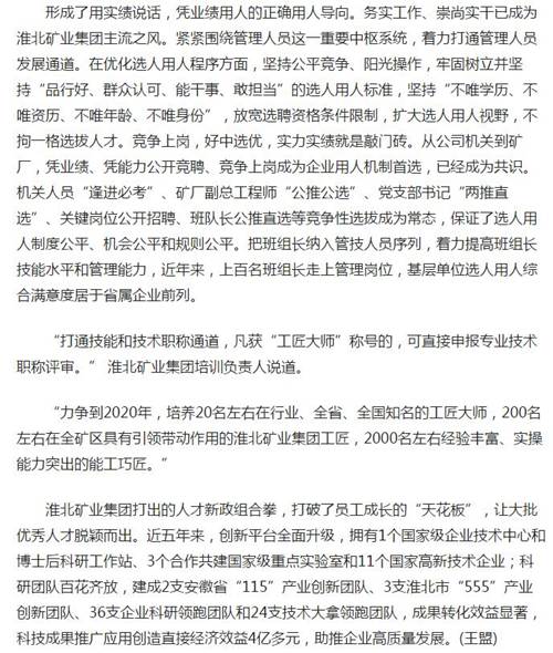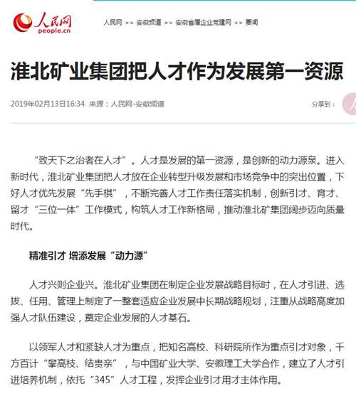 《人民网》:淮北矿业集团把人才作为发展第一资源
