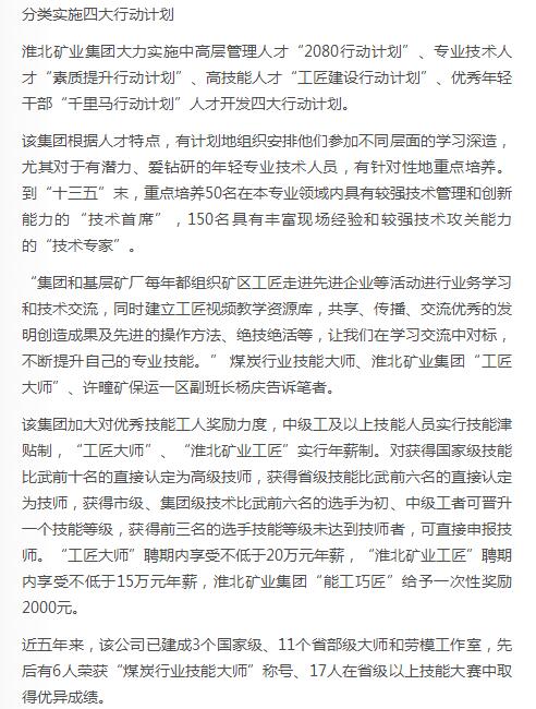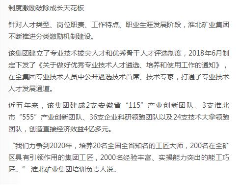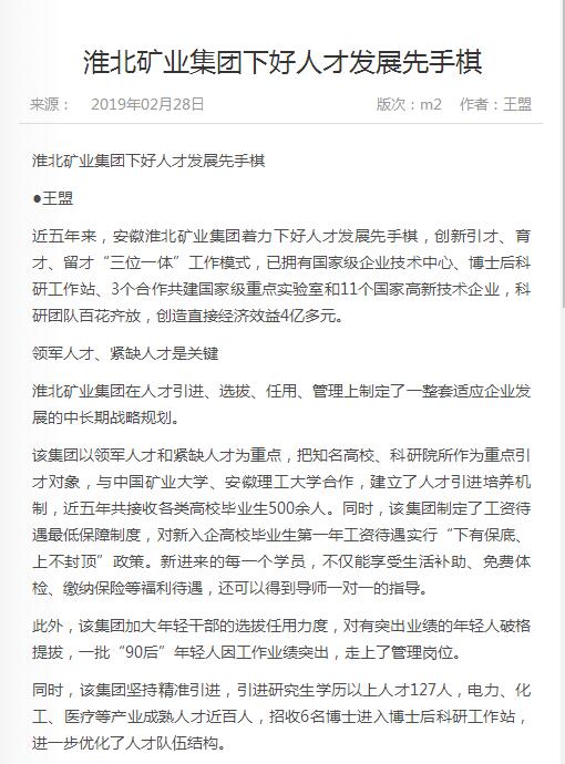 《中国煤炭报》2版头条:淮北矿业集团下好人才发展先手棋