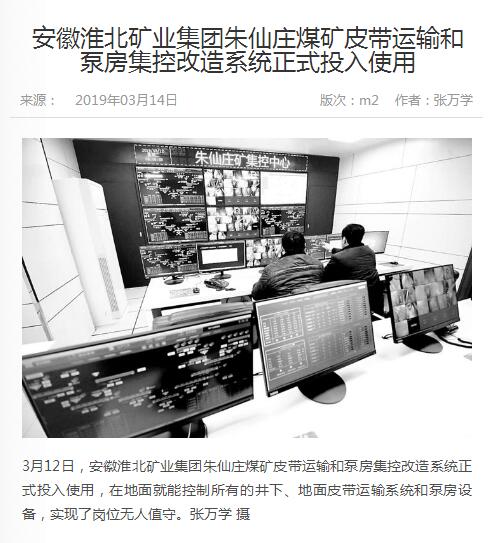 《中国煤炭报》:朱仙庄矿集中控制实现无人值守