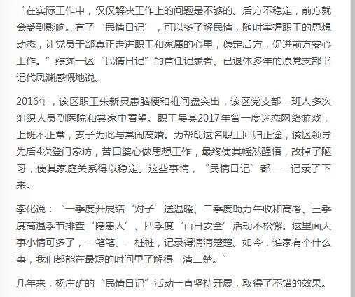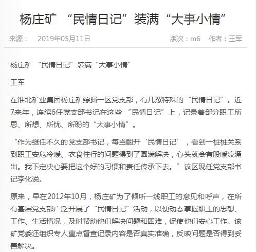 《中国煤炭报》:杨庄矿 “民情日记”装满“大事小情”