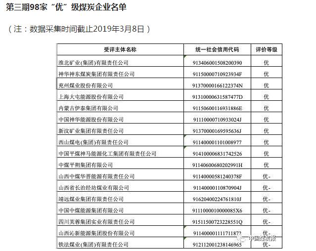 据悉,为精准开展对煤炭领域企业的分类监管,促进行业守信自律,国家发改委组织国家公共信用信息中心和相关大数据机构,利用全国信用信息共享平台和大数据技术,对全国19000余家煤炭企业开展了公共信用综合评价。根据2019年第三期评价结果 ,共计评出“优”级企业98家,“差”级企业1768家。